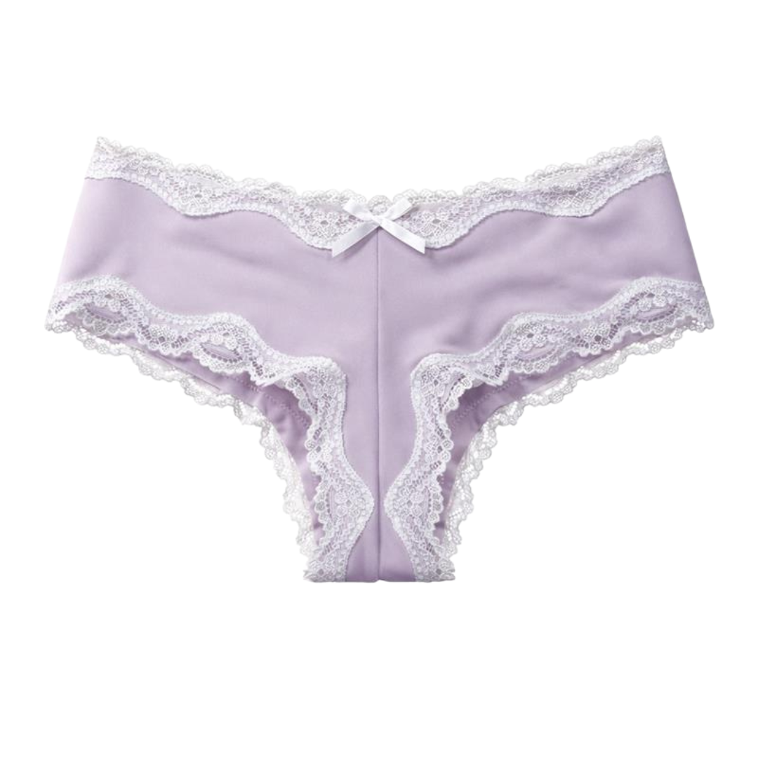 Soft and feminine, the Amara Cheeky features a dreamy lavender hue with delicate lace trim and a sweet bow detail. Designed with a flattering cheeky cut, it offers the perfect blend of comfort and romantic charm.